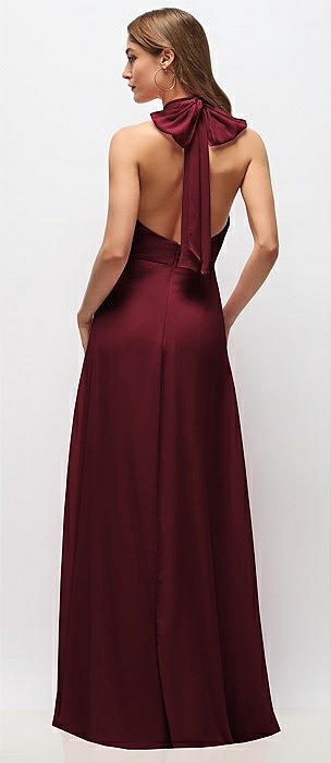 High Neck Halter Backless Maxi Dress in cabernet