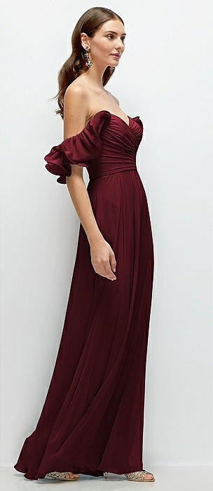 Dramatic Ruffle Edge Strap Chiffon Maxi Dress in cabernet