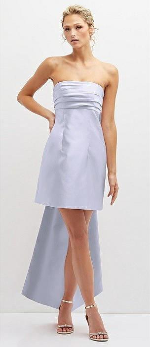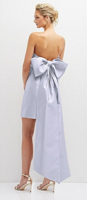 Strapless Satin Column Mini Dress with Oversized Bow in silver dove