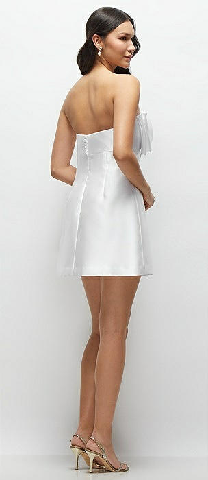 Oversized Bow Strapless Little White Mini Dress with Pearl Accents in white
