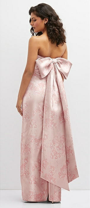 Strapless Floral Satin Column Maxi Dress with Oversized Bow in bow and blossom print