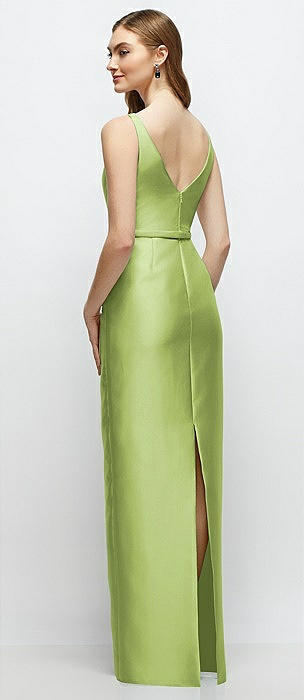 Bateau Neck Satin Column Dress with Bow-Trimmed Skinny Belt in mojito