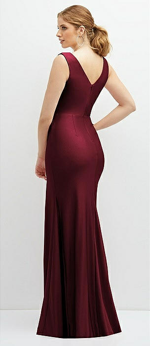 Draped Wrap Stretch Satin Mermaid Dress with Horsehair Hem in cabernet