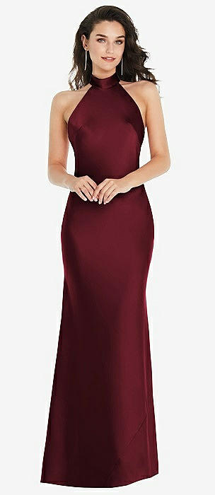Scarf Tie High-Neck Halter Maxi Slip Dress in cabernet