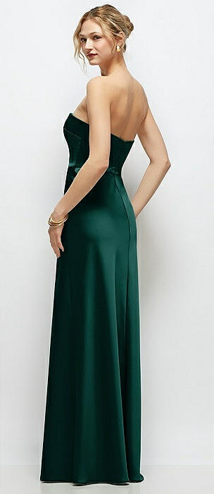 Strapless A-Line Stretch Satin Maxi Dress in evergreen