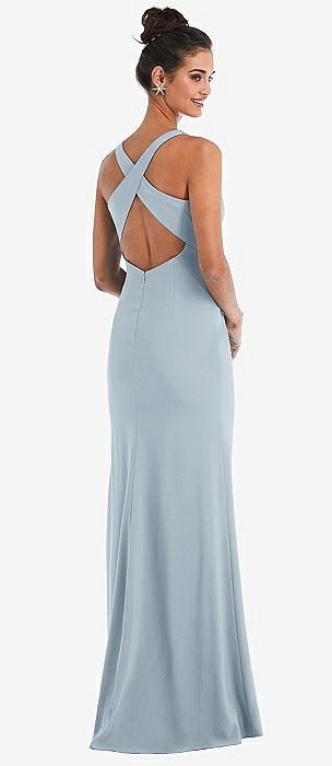 Criss-Cross Cutout Back Maxi Dress with Front Slit in mist