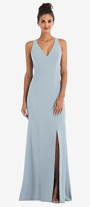 Cap Sleeve Open-Back Trumpet Gown with Front Slit in mist