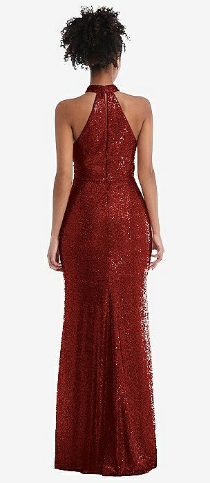 Stand Collar Halter Sequin Trumpet Gown in burgundy