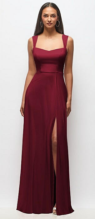 Contoured Wide Strap Sweetheart Maxi Dress in burgundy