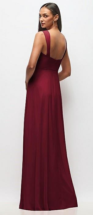 Strapless Pleated Surplice Chiffon Maxi Dress with A-Line Skirt in burgundy