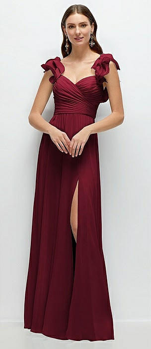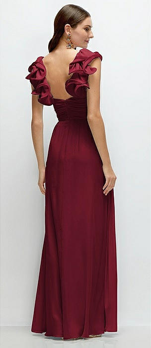 Dramatic Ruffle Edge Strap Chiffon Maxi Dress in burgundy