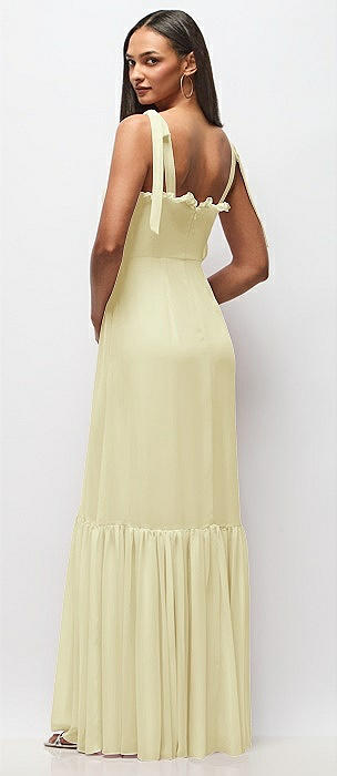Tie-Shoulder Bustier Bodice Ruffle-Hem Maxi Dress in butter yellow