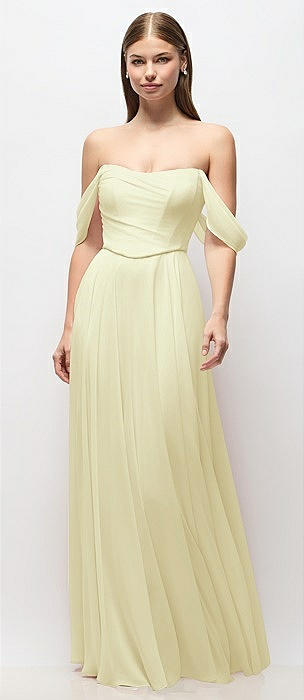 Chiffon Corset Maxi Dress with Removable Off-the-Shoulder Swags in butter yellow