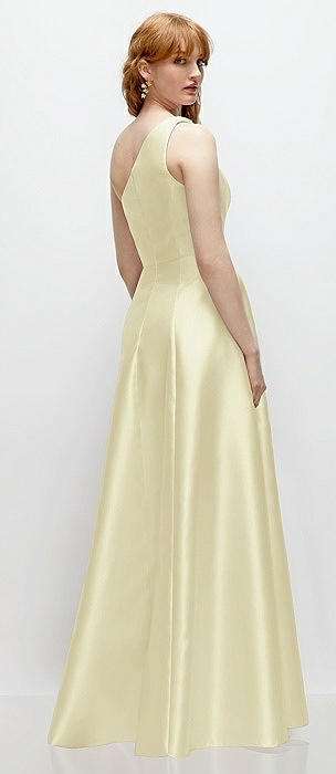 Pleated Draped One-Shoulder Satin Maxi Dress with Pockets in butter yellow