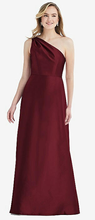 Shirred One-Shoulder Satin Trumpet Dress - Maddie in cabernet