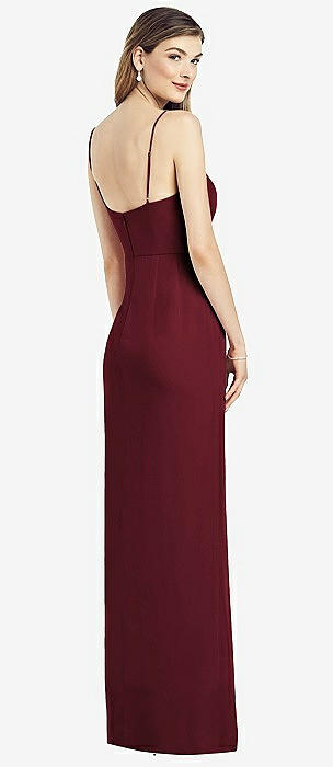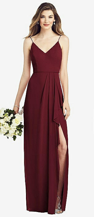 Spaghetti Strap Draped Skirt Gown with Front Slit in cabernet