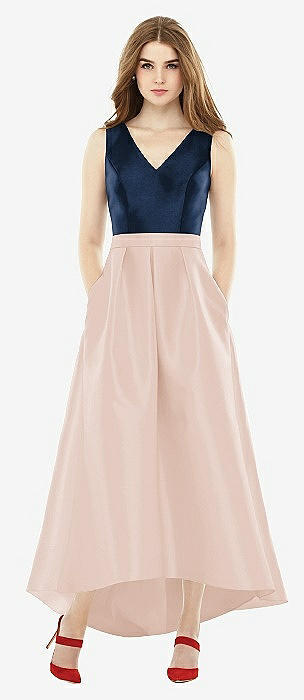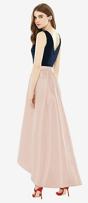 Bateau Neck Satin High Low Cocktail Dress in cameo