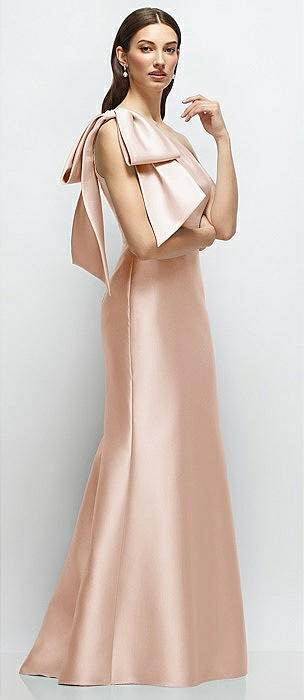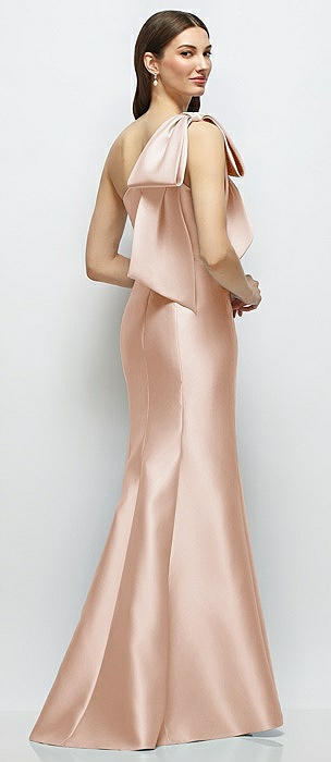 Bow One-Shoulder Satin Trumpet Gown in cameo
