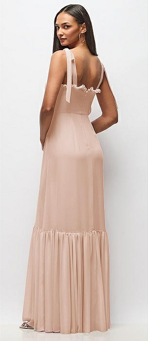 Ruffle Strap Chiffon Bustier Maxi Dress with Ruffle Hem A-Line Skirt in cameo