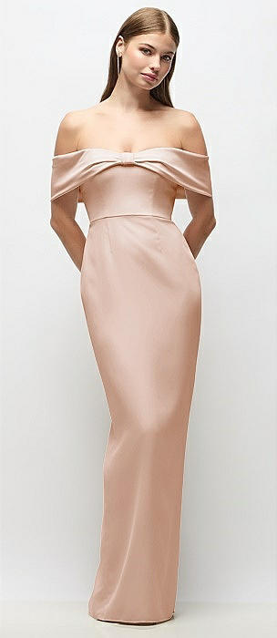 Off-the-Shoulder Crepe Column Maxi Dress with Bow-Pinch Detail in cameo