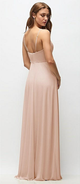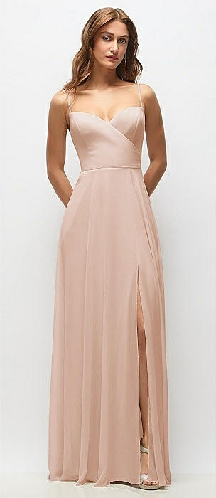 Wrap Bodice Chiffon Maxi Dress with Adjustable Spaghetti Straps in cameo