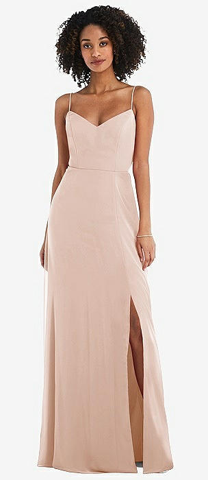 Spaghetti Strap Draped Skirt Gown with Front Slit in cameo