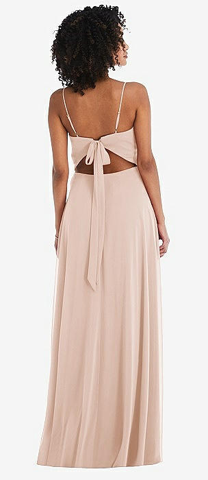 Tie-Back Cutout Maxi Dress with Front Slit in cameo