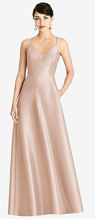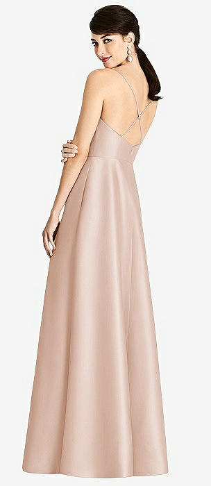 V-Neck Full Skirt Satin Maxi Dress in cameo