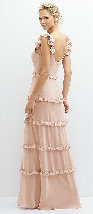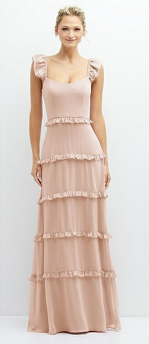 Tiered Chiffon Maxi A-line Dress with Convertible Ruffle Straps in cameo