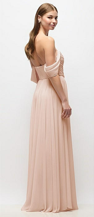 Chiffon Corset Maxi Dress with Removable Off-the-Shoulder Swags in cameo