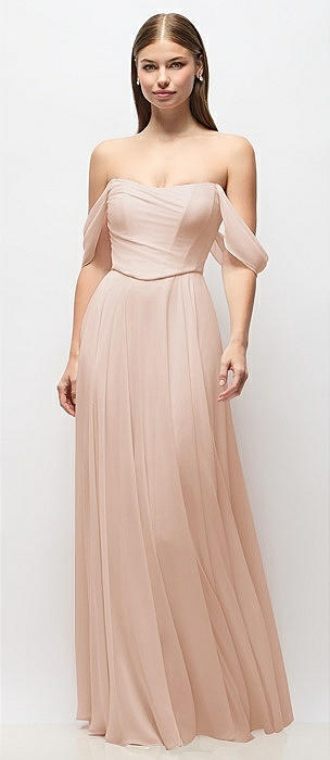 Off-the-Shoulder Basque Corset Chiffon Maxi Dress in cameo