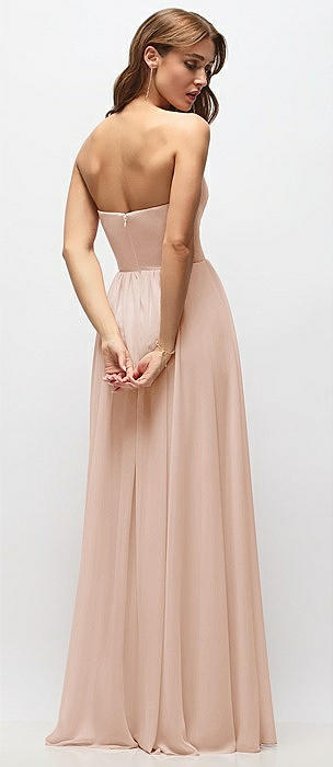 Strapless Scoop Back Maxi Dress with Front Slit in cameo