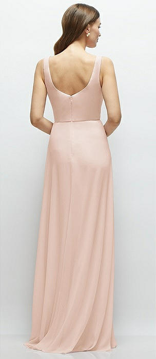 Square Neck Chiffon Maxi Dress with Circle Skirt in cameo
