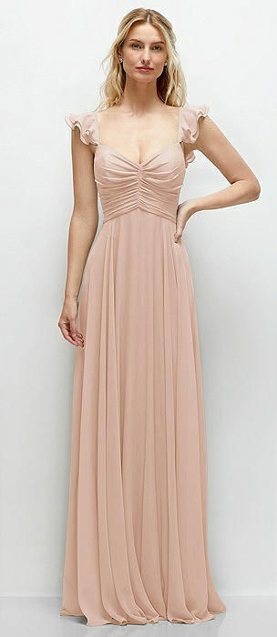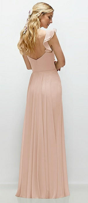 Convertible Ruffle Strap Chiffon Maxi Dress with Full Circle Skirt in cameo