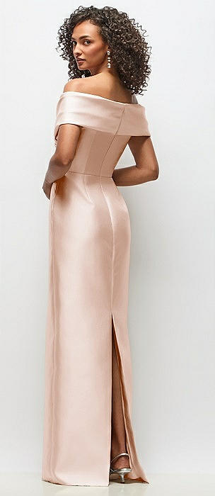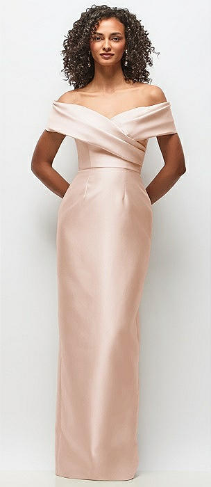 Off-the-Shoulder Draped Wrap Satin Maxi Dress in cameo