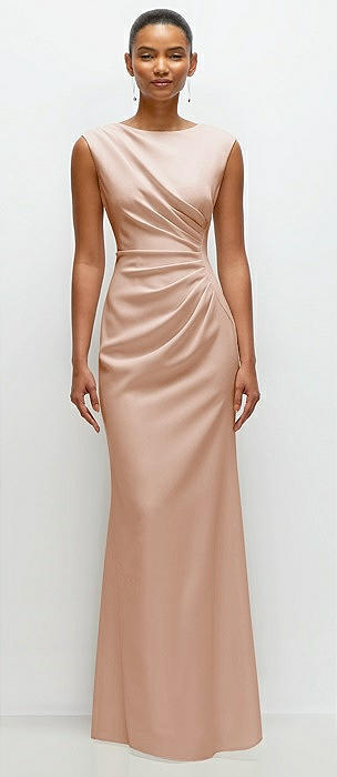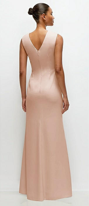 Sleeveless Cap Shoulder Crepe Maxi Dress with Trumpet Skirt in cameo