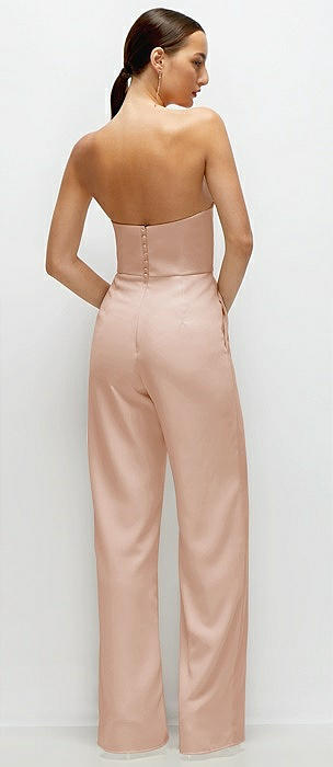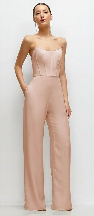 Strapless Cat-Eye Corset Crepe Wedding Jumpsuit in cameo