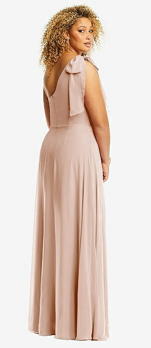 Draped One-Shoulder Maxi Dress with Scarf Bow