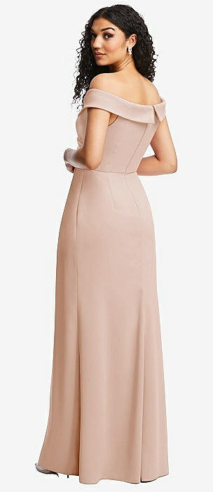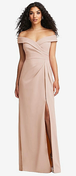 Cuffed Off-the-Shoulder Pleated Faux Wrap Maxi Dress