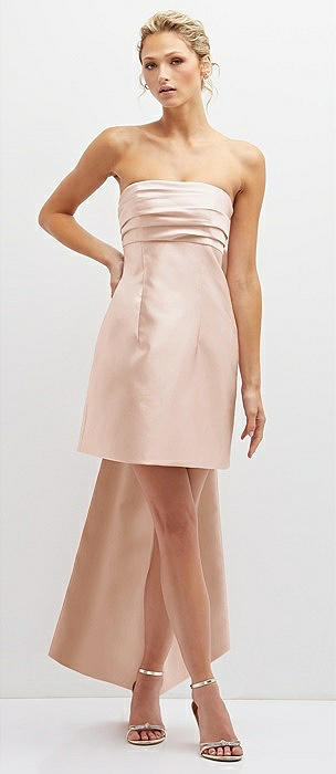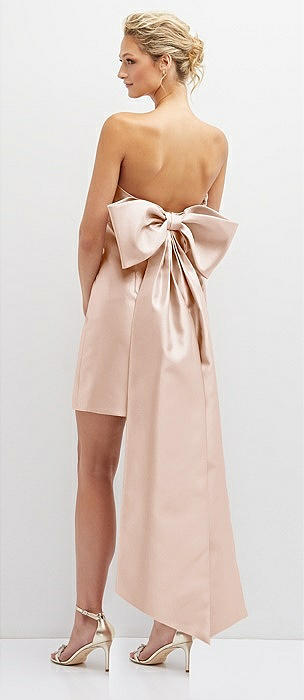 Strapless Satin Column Mini Dress with Oversized Bow in cameo