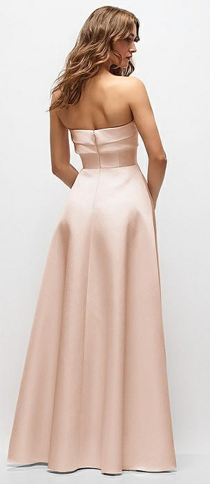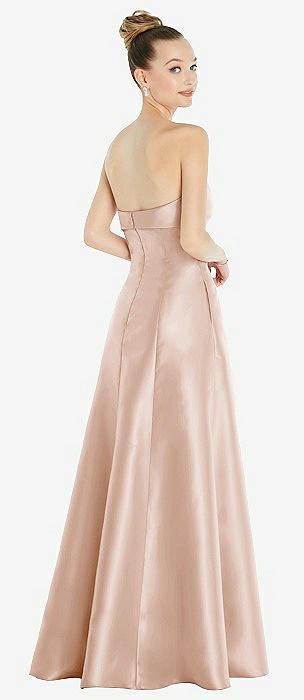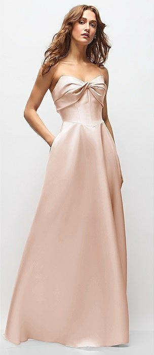 Strapless A-line Satin Gown with Modern Bow Detail in cameo