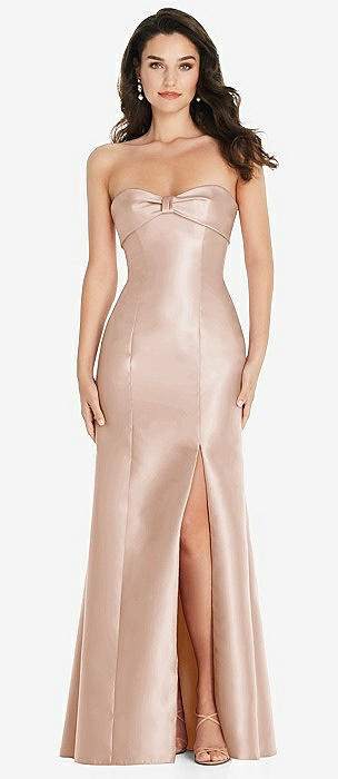 Strapless Draped Bodice Column Dress with Oversized Bow in cameo
