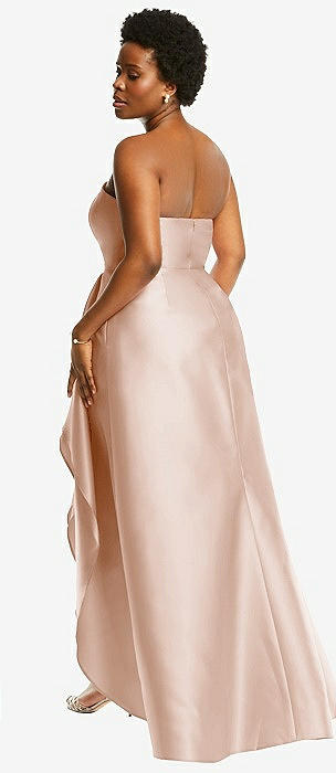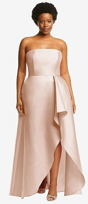 Strapless Deep Ruffle Hem Satin High Low Dress with Pockets in cameo