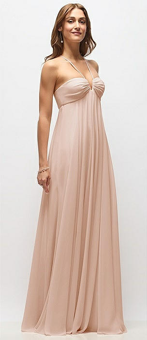 Empire Waist Chiffon Halter Maxi Dress with Convertible Spaghetti Straps in cameo