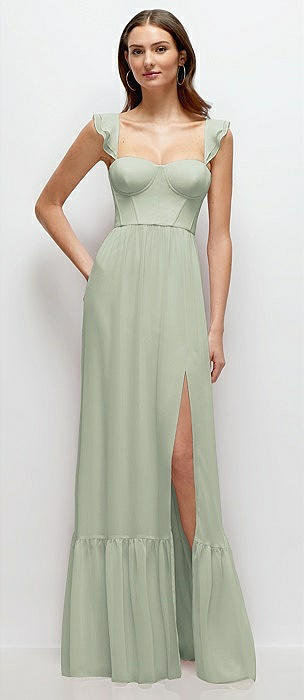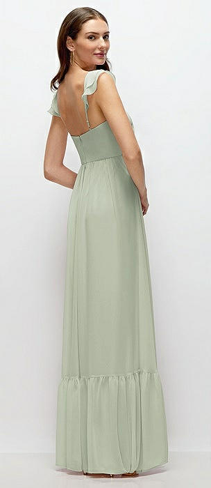Ruffle Strap Chiffon Bustier Maxi Dress with Ruffle Hem A-Line Skirt in celadon