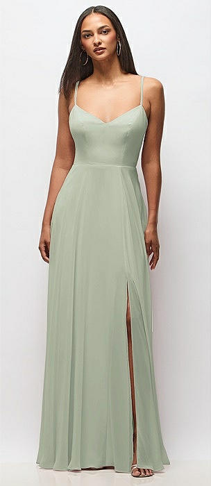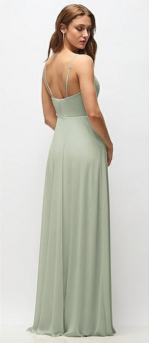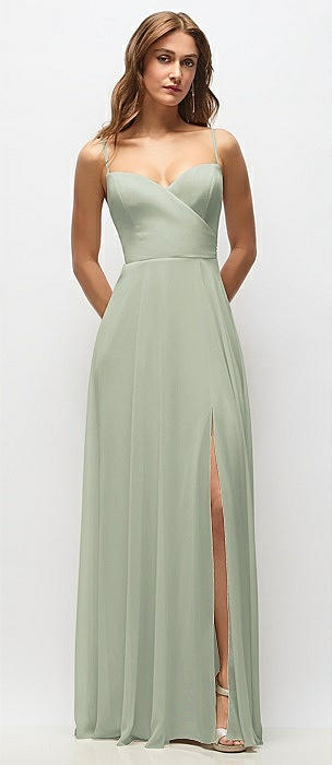 Wrap Bodice Chiffon Maxi Dress with Adjustable Spaghetti Straps in celadon