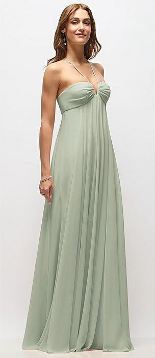 Empire Waist Chiffon Halter Maxi Dress with Convertible Spaghetti Straps in celadon