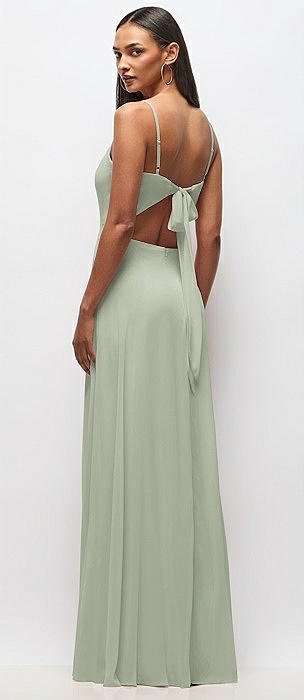 Tie-Back Cutout Maxi Dress with Front Slit in celadon