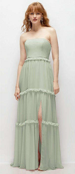 Strapless Chiffon Maxi Dress with Tiered Micro Ruffle Full Skirt in celadon