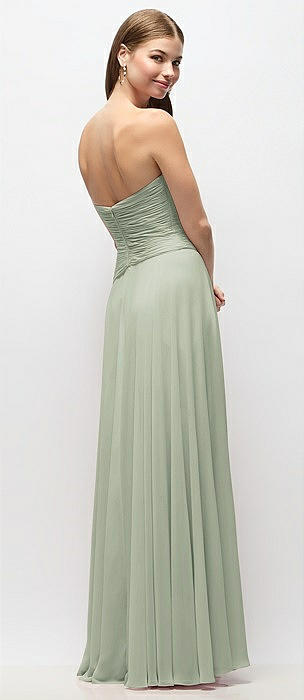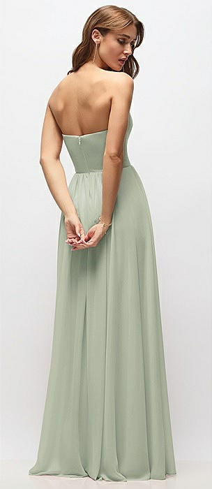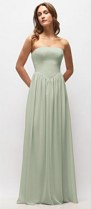 Strapless Basque Drop Waist Chiffon Maxi Dress with Shirred Skirt in celadon